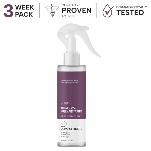 DERMATOUCH Actives 2% Rosemary Water Hair Growth Spray is a natural, effective solution for promoting hair growth and reducing hair fall. Infused w...