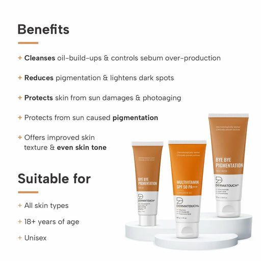 Dermatouch Bye Bye Pigmentation Combo kit of Face Wash & Cream is great to add to your daily skincare routine to treat any pigmentation, dark s...