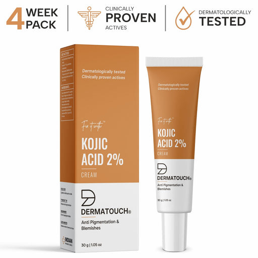 DERMATOUCH Kojic Acid 2% Cream is designed to treat hyperpigmentation and uneven skin tone. Kojic acid effectively reduces melanin synthesis that c...